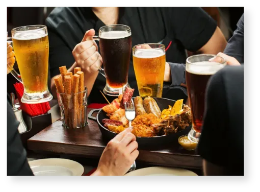 Indulge in our diverse beer selection and culinary delights.